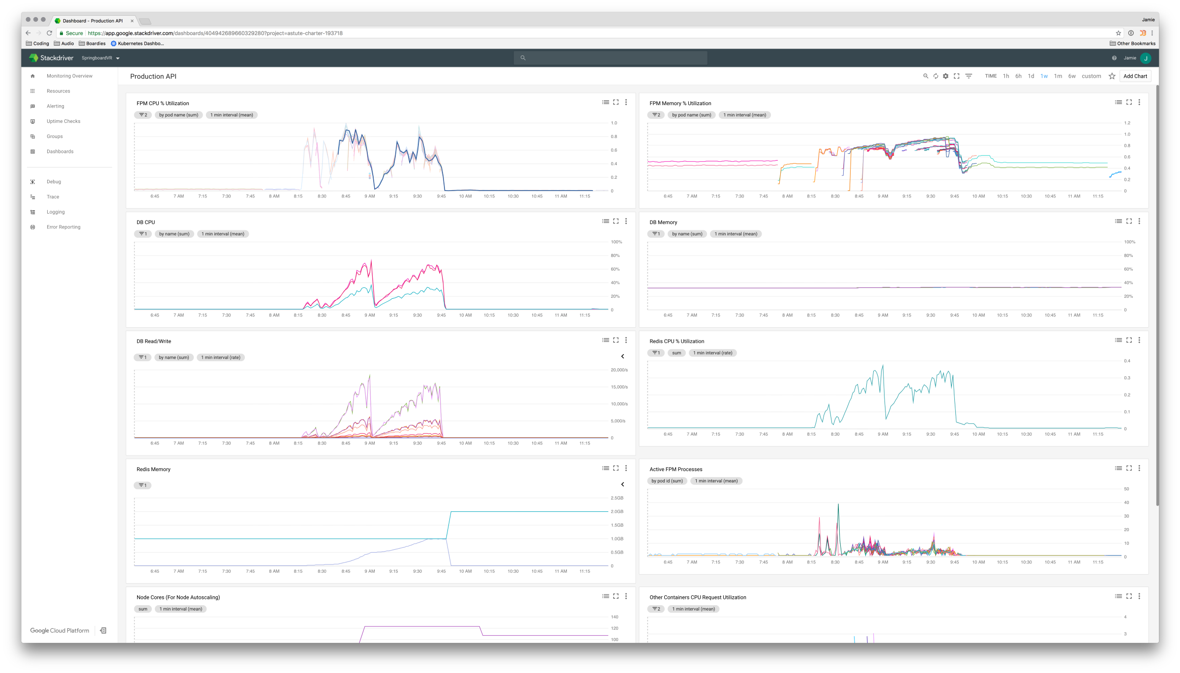 One of the primary reasons we left AWS for GKE is because Google has monitoring and logging built-in with Stackdriver. This feature is still in beta but we found it fairly intuitive and it automatically exposes some really useful metrics. Everyone’s monitoring solution is going to look slightly different and if you’re on GKE I would recommend using Stackdriver, but if your cluster is hosted somewhere else you can never go wrong with rolling out the popular Prometheus Operator and Grafana for monitoring.